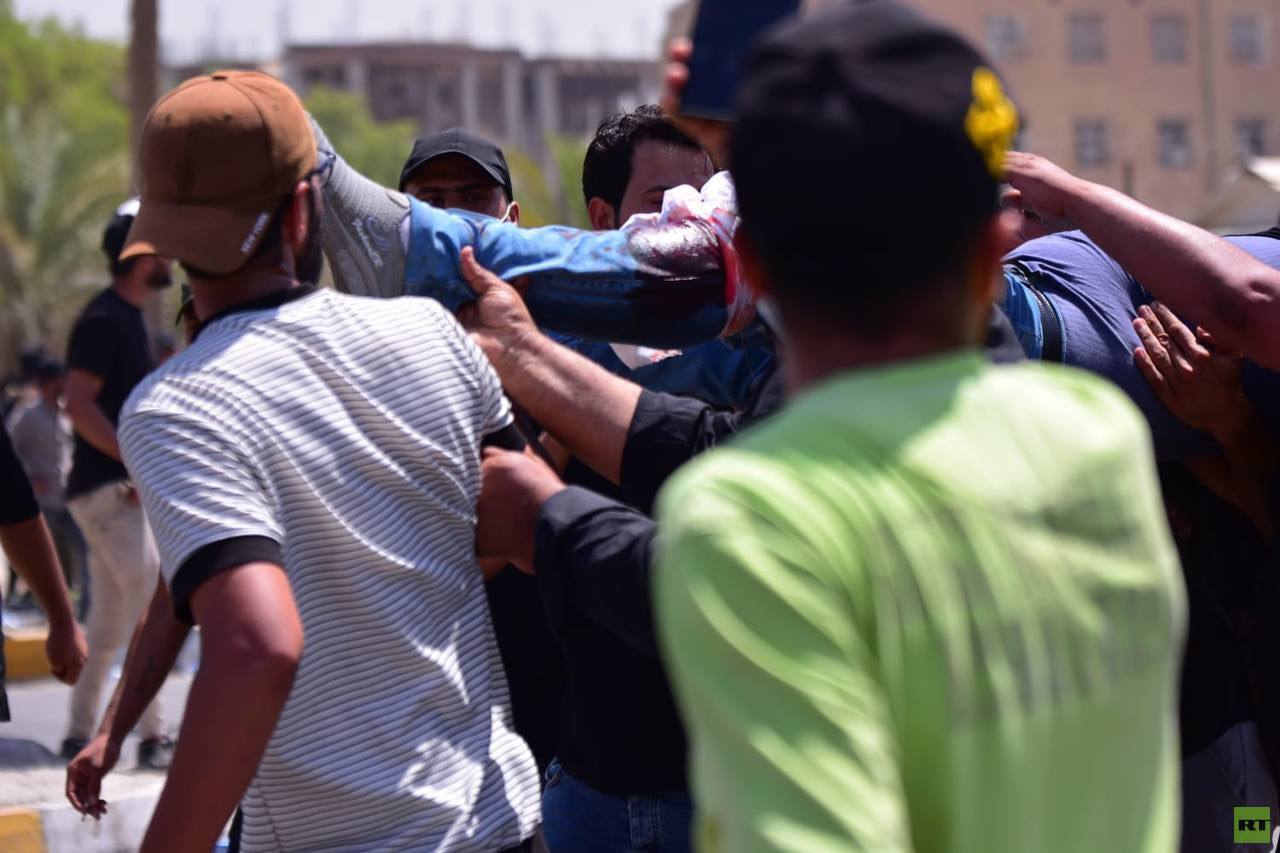 وبحسب مواقع خبرية فإنه "اصيب 5 من قوات مكافحة الشغب بجروح متفرقة أثناء تصديهم الى المتظاهرين الذين يحاولون اقتحام الخضراء".