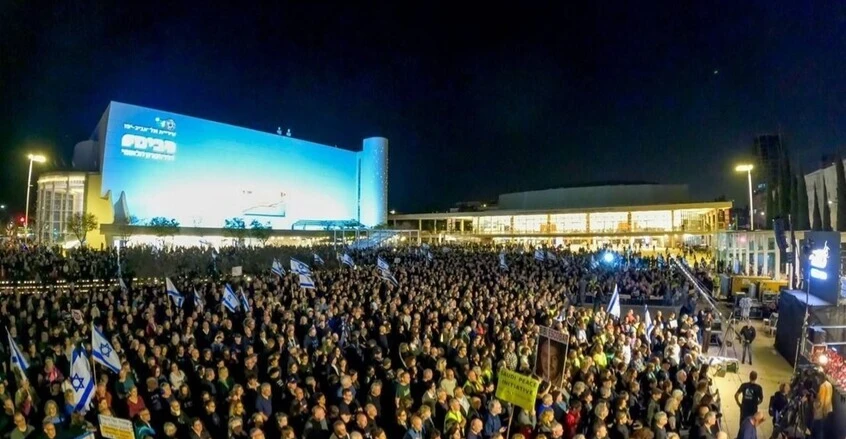 تظاهر آلاف الإسرائيليين في وسط مدينة تل أبيب، مساء اليوم السبت، للتعبير عن رفضهم القاطع لسياسات حكومة بنيامين نتنياهو، مستغلين قرار رفع قيود الدفاع المدني ووقف الأعمال القتالية المؤقت لتجديد مطالبهم بإسقاط الحكومة.