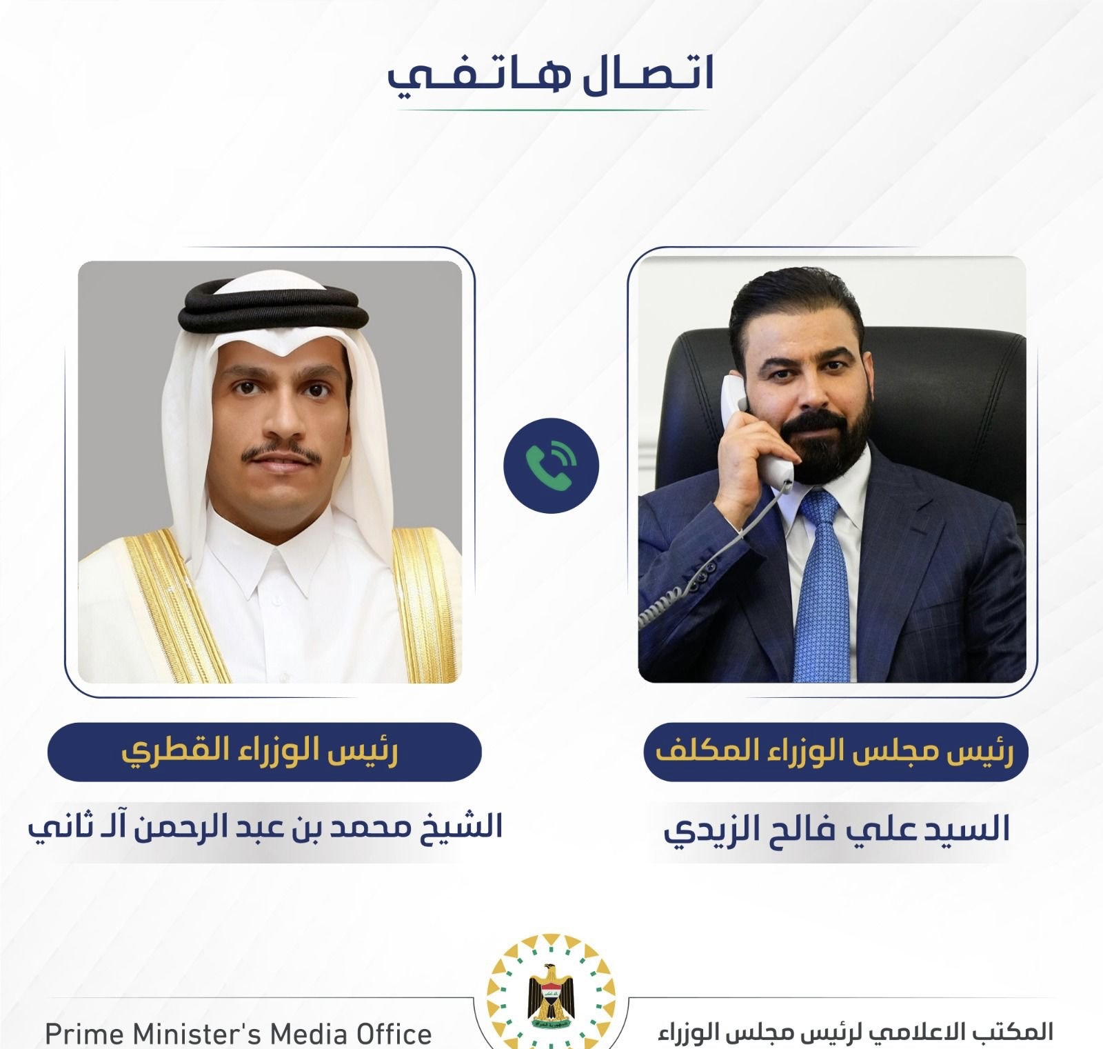 بحث رئيس الوزراء المكلف علي فالح الزيدي، اليوم الثلاثاء، مع رئيس مجلس وزراء دولة قطر الشيخ محمد بن عبد الرحمن بن جاسم آل ثاني سبل تطوير العلاقات الثنائية وتوسيع آفاق التعاون بين البلدين.