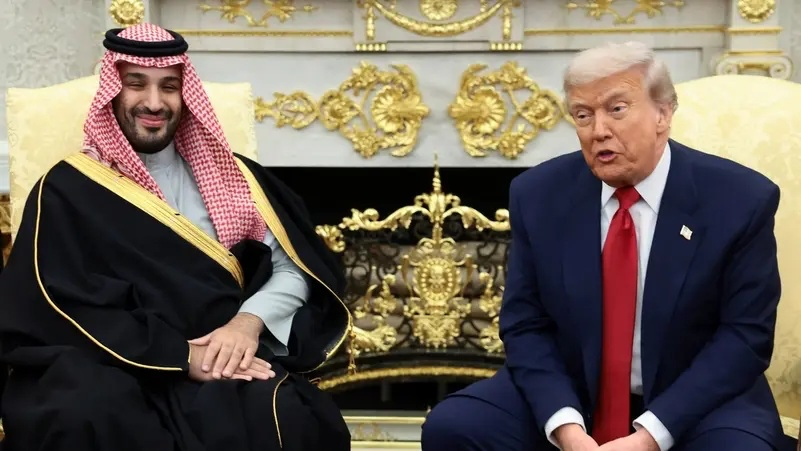 من جانبه، عبّر الرئيس الأميركي دونالد ترامب عن شكره لولي العهد السعودي على إعلان رفع حجم الاستثمارات السعودية في الولايات المتحدة، قائلاً: “حققنا استثمارات قدرها 17 ترليون دولار، ونتوقع أن تصل إلى 21 بانتهاء العام الأول من ولايتي”.