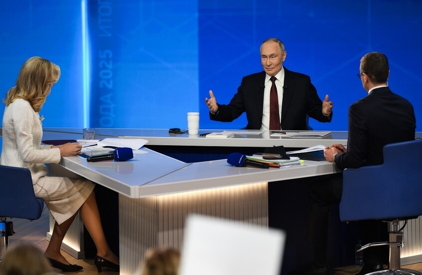 وأكد بوتين أن حكومة كييف ترفض إنهاء الأزمة عبر الوسائل السلمية، لكنه لاحظ وجود إشارات منها تشير إلى استعدادها "لحوار ما". وأشار إلى استمرار موسكو في دعوتها لتسوية سلمية تعالج "الجذور الأساسية للأزمة"، كما قدمت مقترحاتها في يونيو 2024.