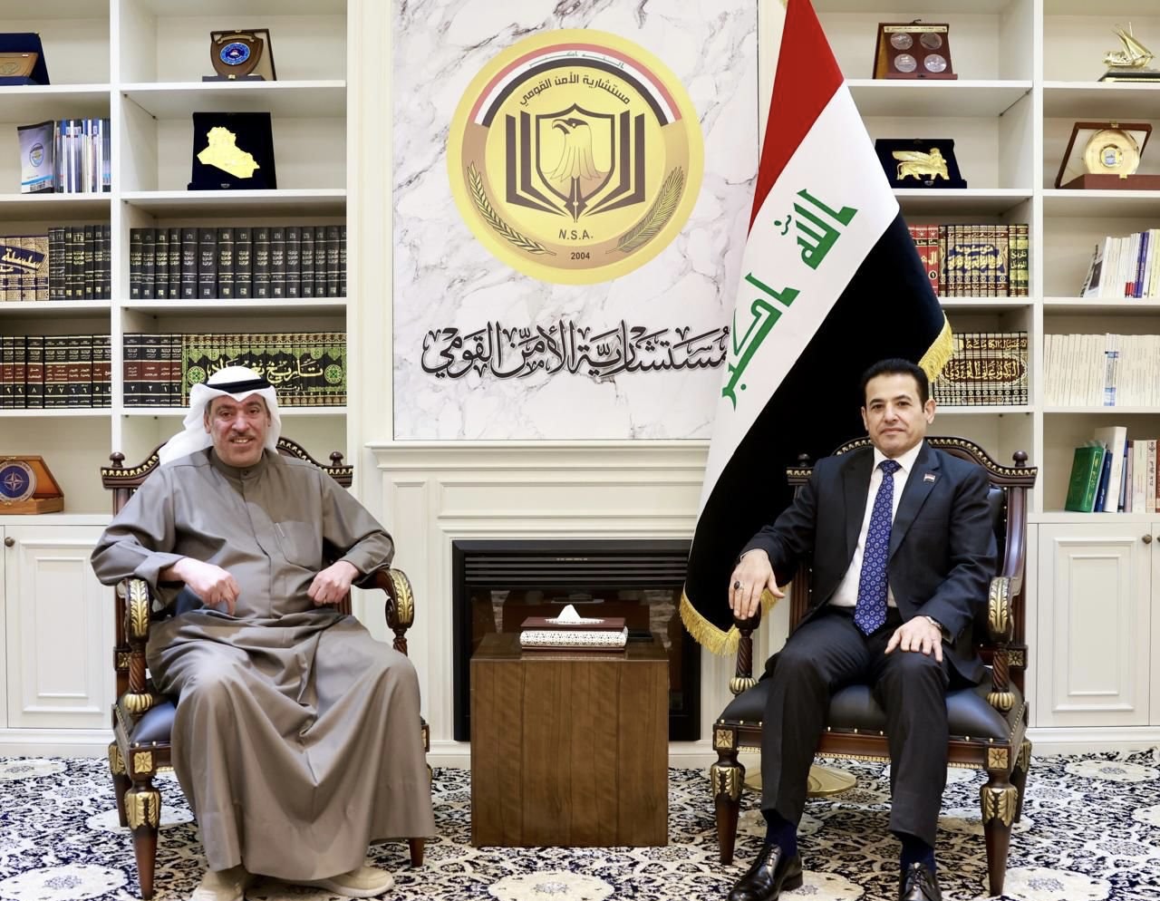 وذكر المكتب الإعلامي لمستشار الأمن القومي في بيان تلقاه كلمة الإخباري: أن الأعرجي استقبل في مكتبه مشعل الهولي، رئيس جهاز المخابرات الكويتي، والوفد المرافق له، حيث جرى بحث العلاقات الأخوية التي تجمع البلدين والشعبين الشقيقين، وسبل تطويرها بما يخدم المصالح المشتركة ويعزز التعاون الثنائي على مختلف المستويات.